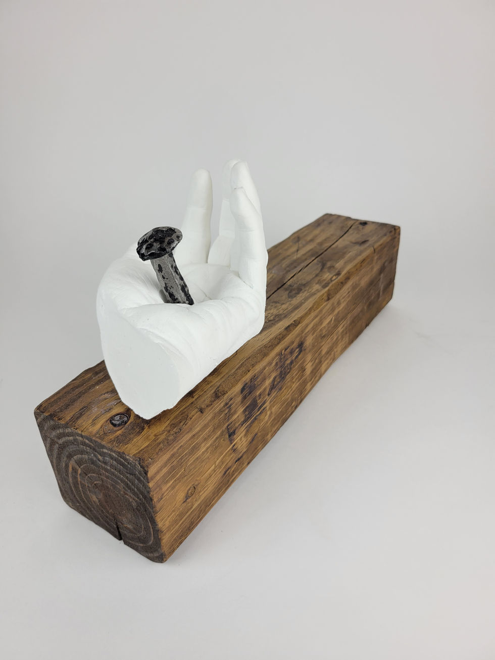 This is a very personal and important sculpture to me. The hand is a representation of Jesus Christ's hand while He was on the cross. This can only give me a small glimpse of how painful the spike in His hand would have been, but it is more than enough to remind me of His unconditional love for me and all of His children. This can also be paired with my other piece "My Tears In His Hands."